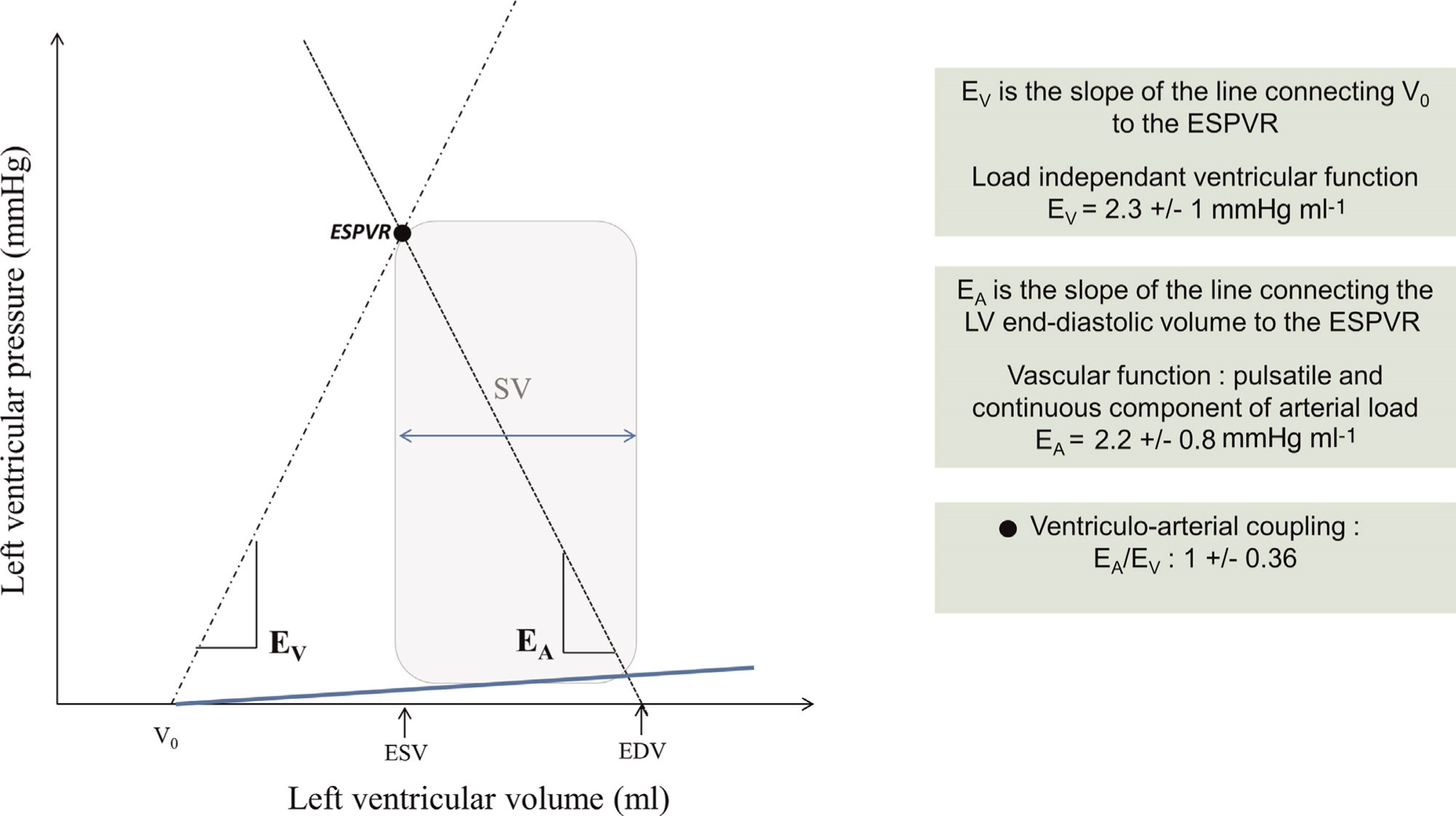 “we can describe the arterial load by the slope of the relationship between the stroke volume (SV) and end-systolic arterial pressure: the arterial effective elastance (EA” Go to annotation (Guinot et al., 2022, p. 3)